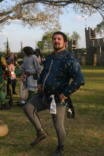 The above picture was taken at Gulf Wars in March of A.S. XLIII (2009). Seamus is a Squire to Sir Raim y Hynnddyll, the Lord Husband of Lady Maegwynn Attewode, and the father of Roy the Urchin, and Shelton the Destroyer and Elizabeth the Bold. He attended his first event in April of A.S. XXXVI (2002), but really became active following the birth of his second son. He was the Marshal for Meridian Maneuvers in February of A.S. XXXIX (2005) and the Autocrat for Meridian Maneuvers in February of A.S. XL (2006), and also served as Breakfast Steward for both events. He formerly served the Shire of Ravenwood both as Fighter Marshal and as Youth Combat Marshal, and he has been Seneschal of Ravenwood since April. Seamus received the Order of the Argent Shield at Panhandle Skirmishes 2006, and served as Breakfast Steward for Spring Coronation of Gunther and Kora with his Lady wife. He also has marshalled at numerous events, and won the Anti-A&S competition at Fool's War XX with his Axe. His name and device are now registered with the SCA College of Arms.