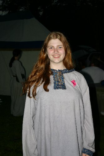 Artemis is the very talented eighteen year old daughter of Lord Andrew MacLeod. This picture was taken at Fool's War XVI, in April of XXXIX (2005). She is a singer, flautist, and actress and has competed in Music and Singing at KA&S. Even as a child she was learning to sew, cook, and draw, and wrote and illustrated her own stories and plays. She also is a graduate of the Meridian Pages School. We would love to get a more current photograph of this young lady, and hope that soon we will.