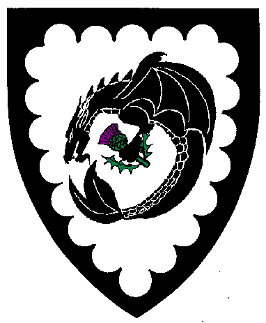 HLady Essyllt's name was returned by Laurel, but her device (Argent, a sea-dragon in annulo sable maintaining a thistle proper within a bordure engrailed sable ) is registered by the SCA College of Arms under the name Esther of Owl's Nest.
