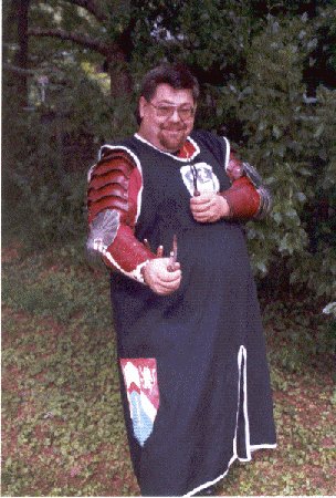 Lord Etienne became active in the SCA with the Shire of Sol Haven in A.S. XXV, and was one of the founding members of The Sol Haven Players and the Not Necessarily Bards. For a while he was inactive, but in A.S. XXVIII (1993) he relocated to the Kingdom of Ansteorra where he became active in both the fighting arts and the arts and sciences, and while there he earned his Award of Arms, and both the Order of the Sable Crane Ansteorra and the Order of the Sable Thistle Ansteorra. After returning to us, Lord Etienne remained active in both fighting and A&S (mainly dancing and brewing), receiving his Meridian Cross, and when he lived for a short while in the Shire of Peregrine he served there as Deputy A&S officer. He is an excellent dancer (and a journeyman in Saltare, a promising practicioner of sleight-of-hand (yes, another one), and for a while also practiced the art of sand casting, and got into into hound coursing.