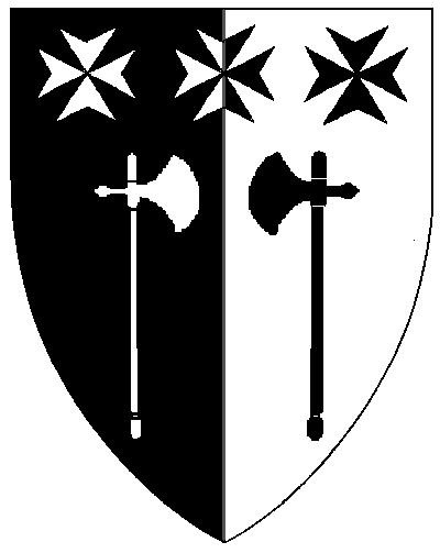 Baron Michael's name was registered by the SCA College of Arms in September of 2003. His device (Per pale sable and argent, two battle axes, blades to center and in chief three Maltese crosses all counterchanged) was registered in April of 2006.