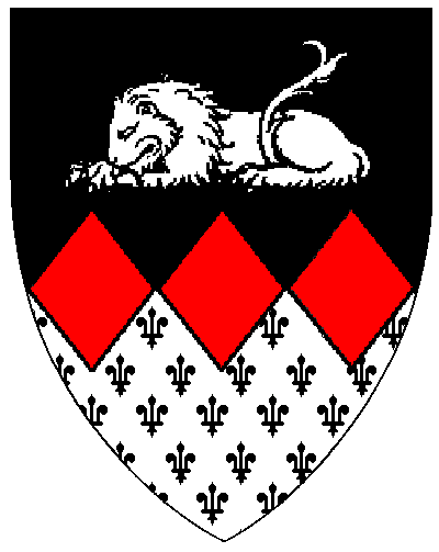Dame Yseult's name and device (Per fess sable and argent semy-de-lys sable, a fess of three lozenges gules and in chief a lion dormant argent) both are registered at Laurel.